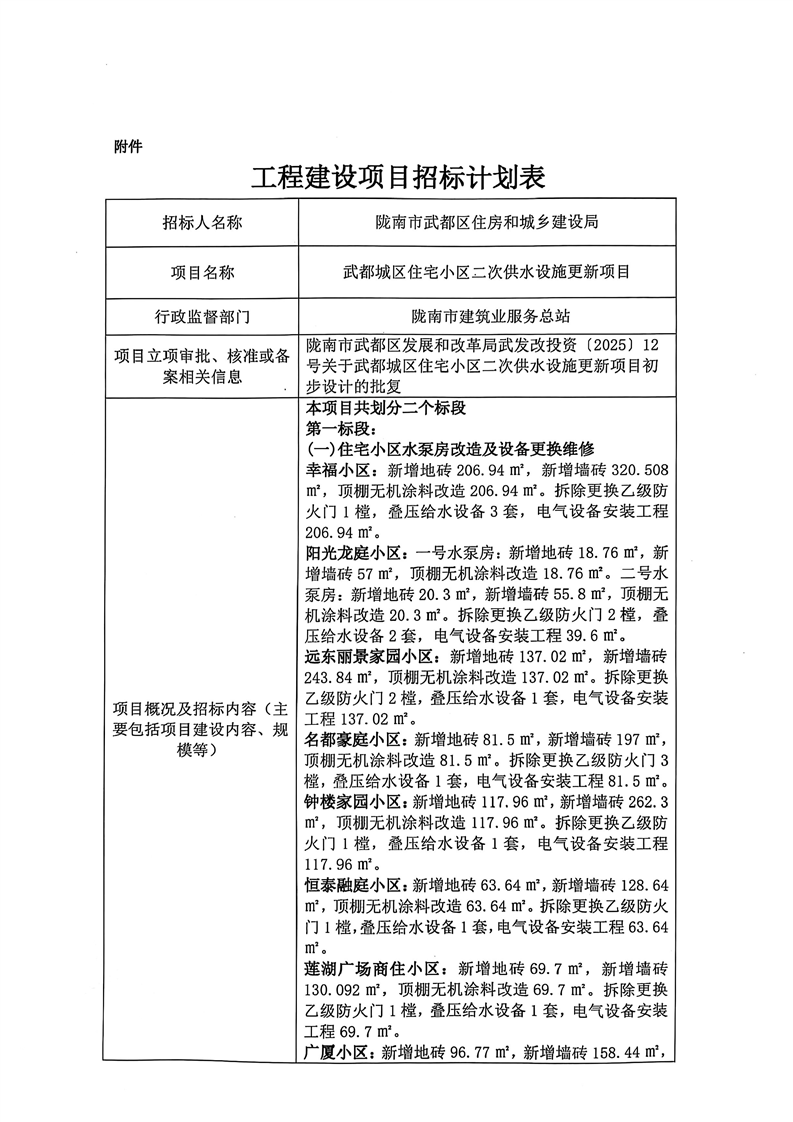 武都城區(qū)住宅小區(qū)二次供水設(shè)施更新項目