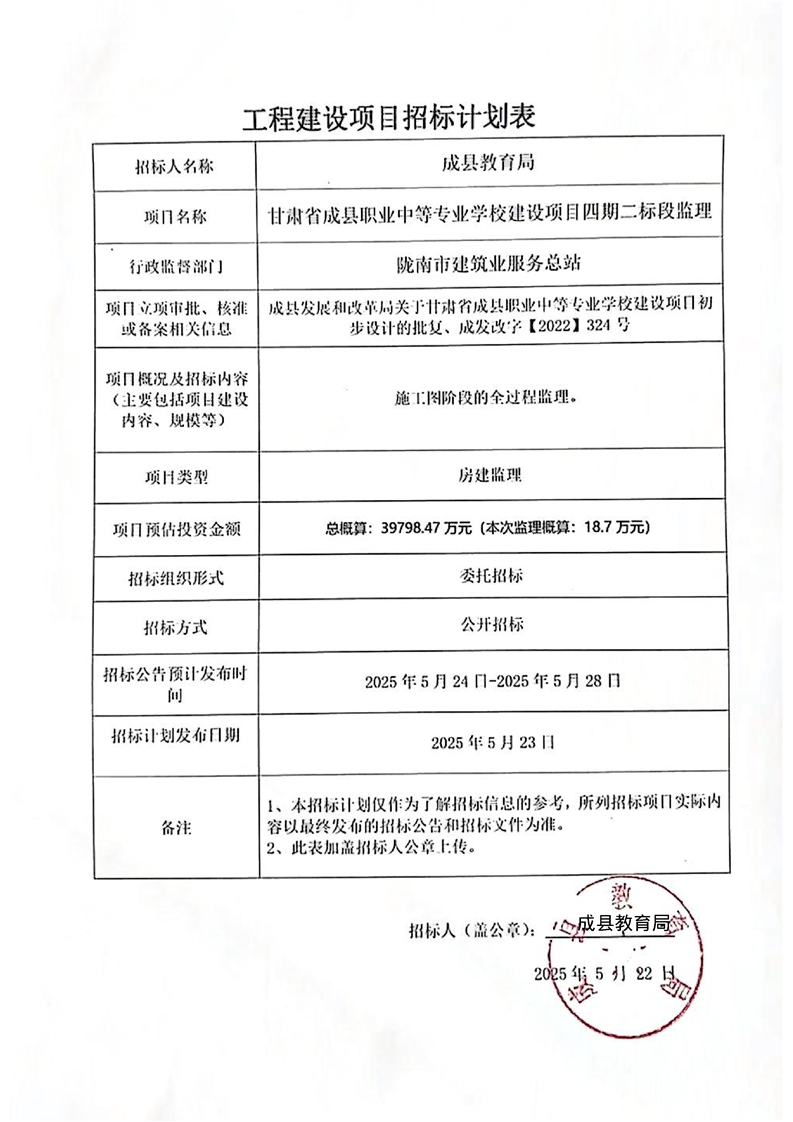 甘肅省成縣職業(yè)中等專(zhuān)業(yè)學(xué)校建設(shè)項(xiàng)目四期二標(biāo)段監(jiān)理