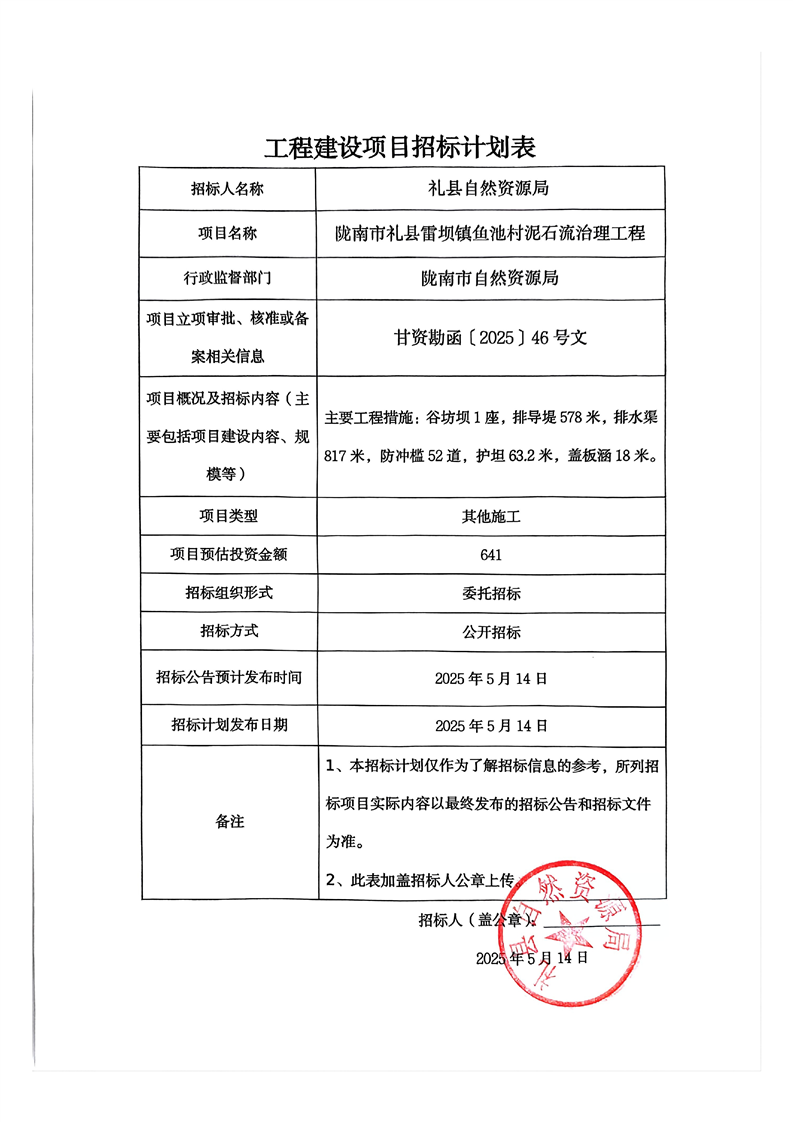 隴南市禮縣雷壩鎮(zhèn)魚(yú)池村泥石流治理工程