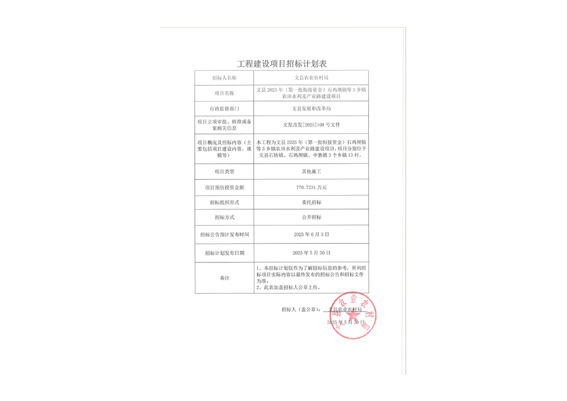 文縣2025年(第一批銜接資金)石雞壩鎮(zhèn)等3鄉(xiāng)鎮(zhèn)農(nóng)田水利及產(chǎn)業(yè)路建設(shè)項目