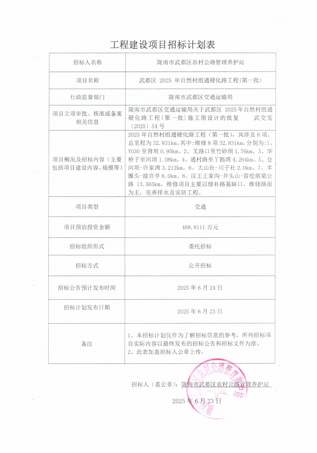 武都區(qū)2025年自然村組通硬化路工程(第一批)