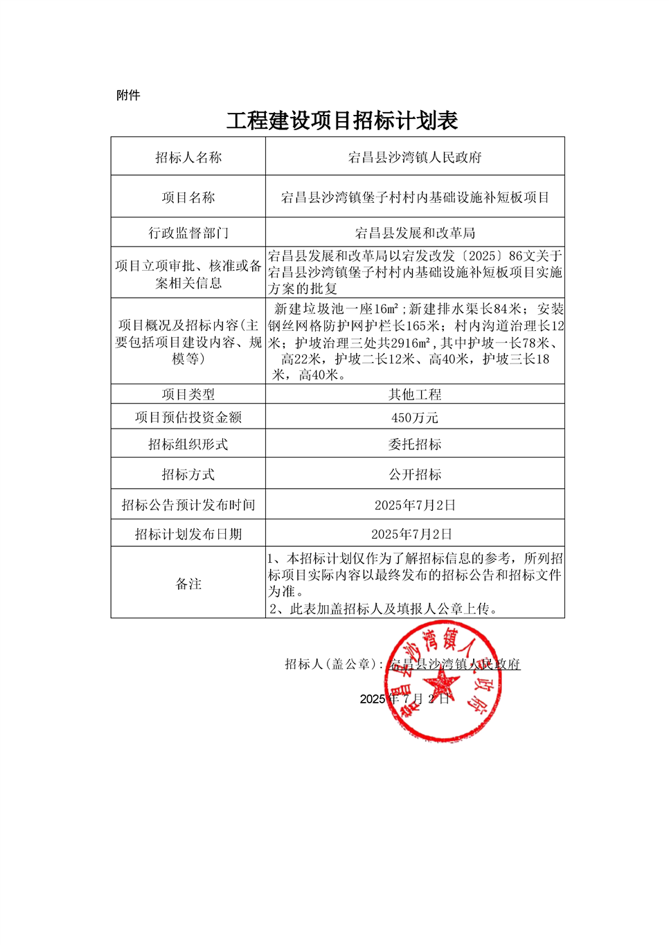 宕昌縣沙灣鎮(zhèn)堡子村村內(nèi)基礎(chǔ)設(shè)施補短板項目
