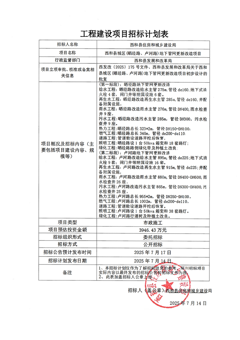 西和縣城區(qū)(曬經路、盧河路)地下管網更新改造項目