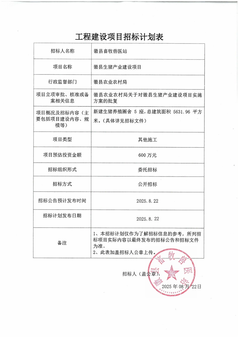 徽縣生豬產(chǎn)業(yè)建設項目