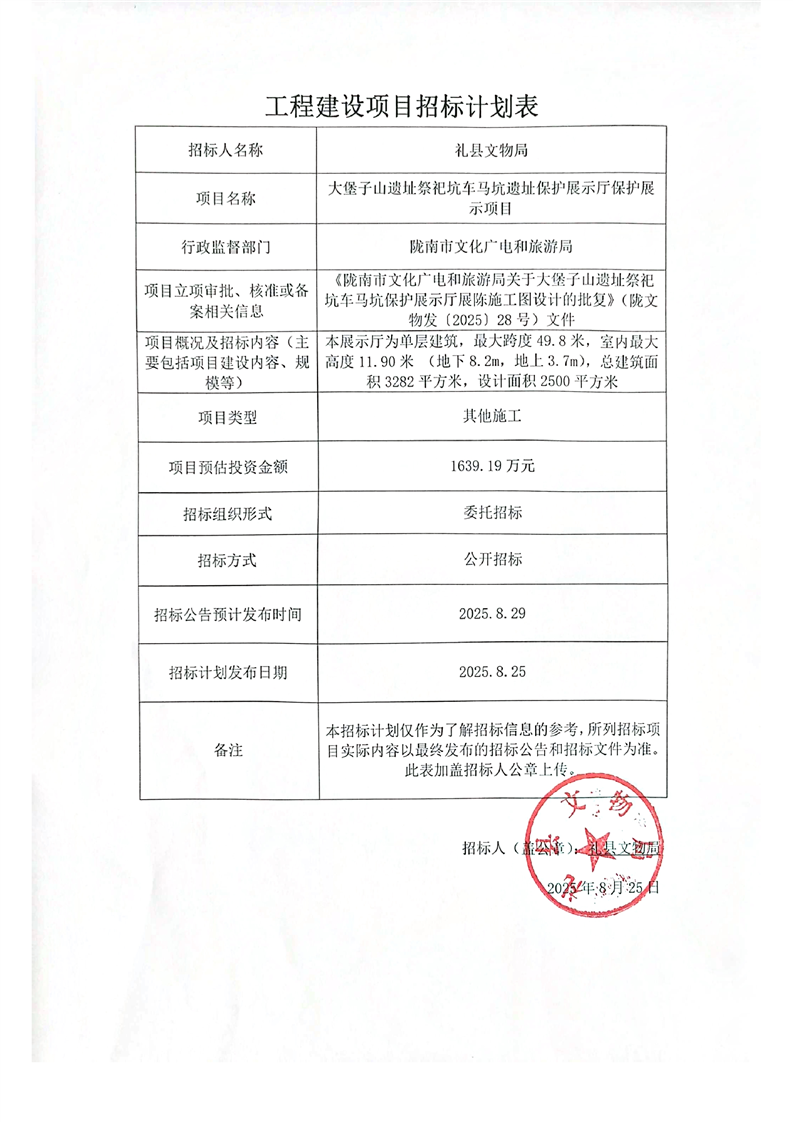 大堡子山遺址祭祀坑車馬坑遺址保護展示廳保護展示項目