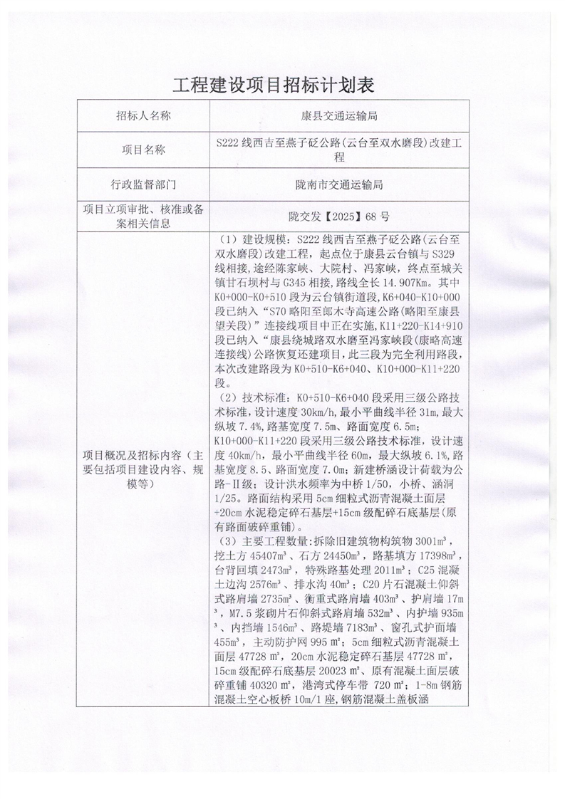 工程建設(shè)項目招標計劃表--S222線西吉至燕子砭公路(云臺至雙水磨段)改建工程.pdf