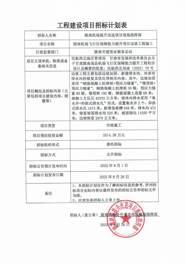 隴南機(jī)場飛行區(qū)保障能力提升項目邊坡工程施工