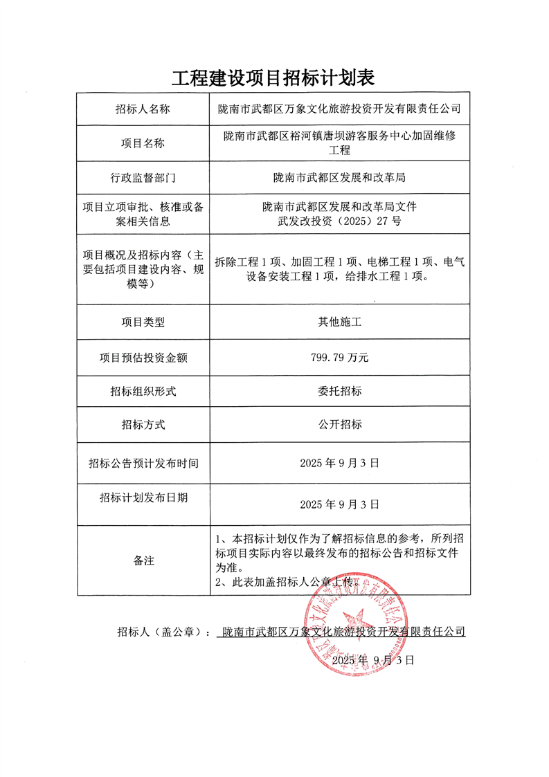 隴南市武都區(qū)裕河鎮(zhèn)唐壩游客服務(wù)中心加固維修工程