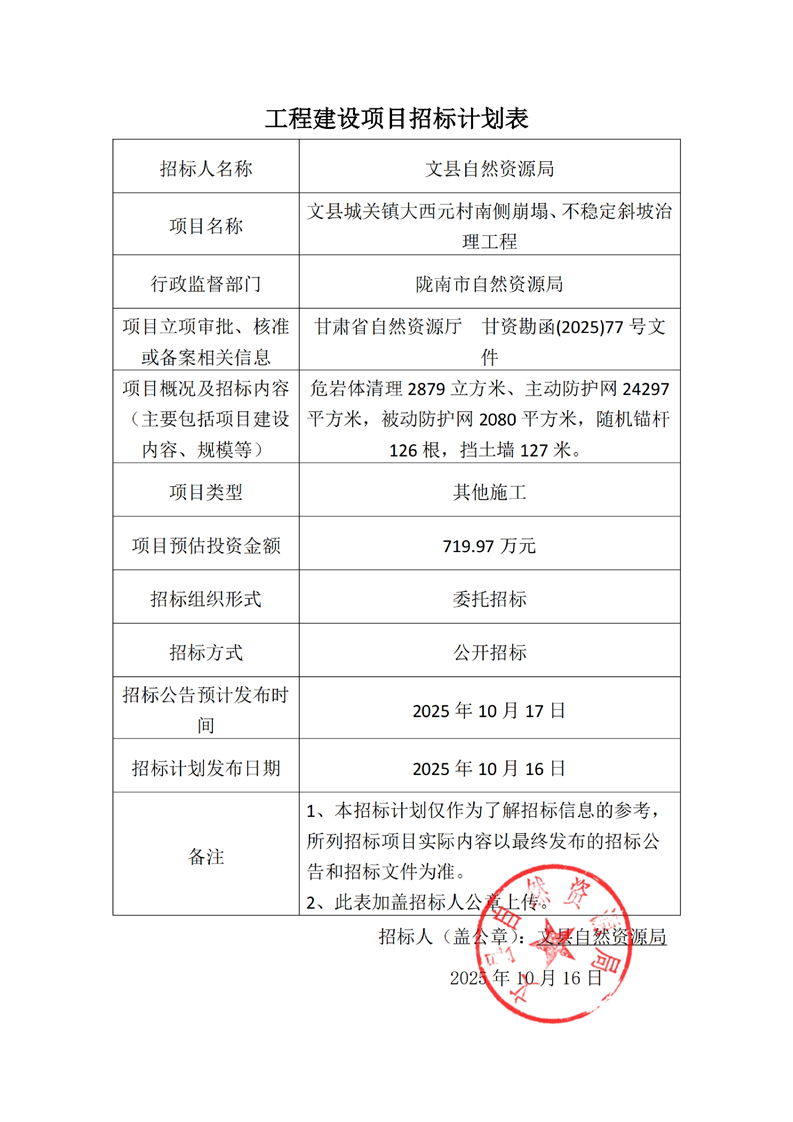 文縣自然資源局工程建設項目招標計劃.pdf