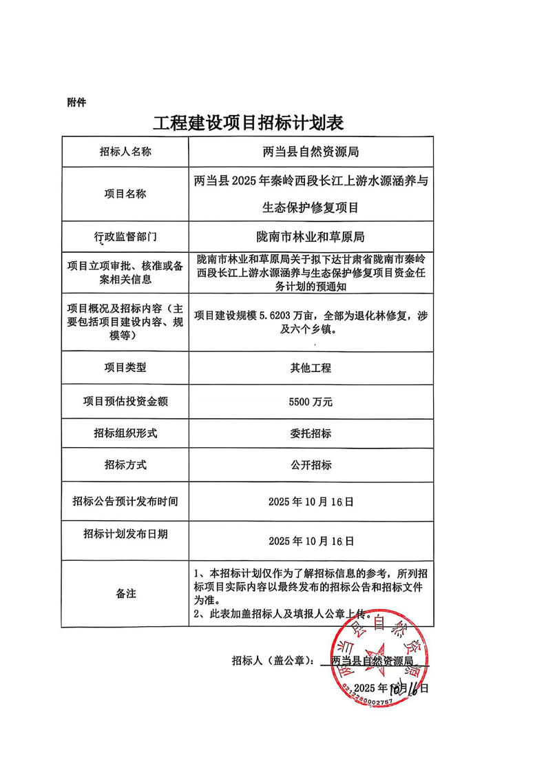 兩當(dāng)縣2025年秦嶺西段長江上游水源涵養(yǎng)與生態(tài)保護(hù)修復(fù)項目
