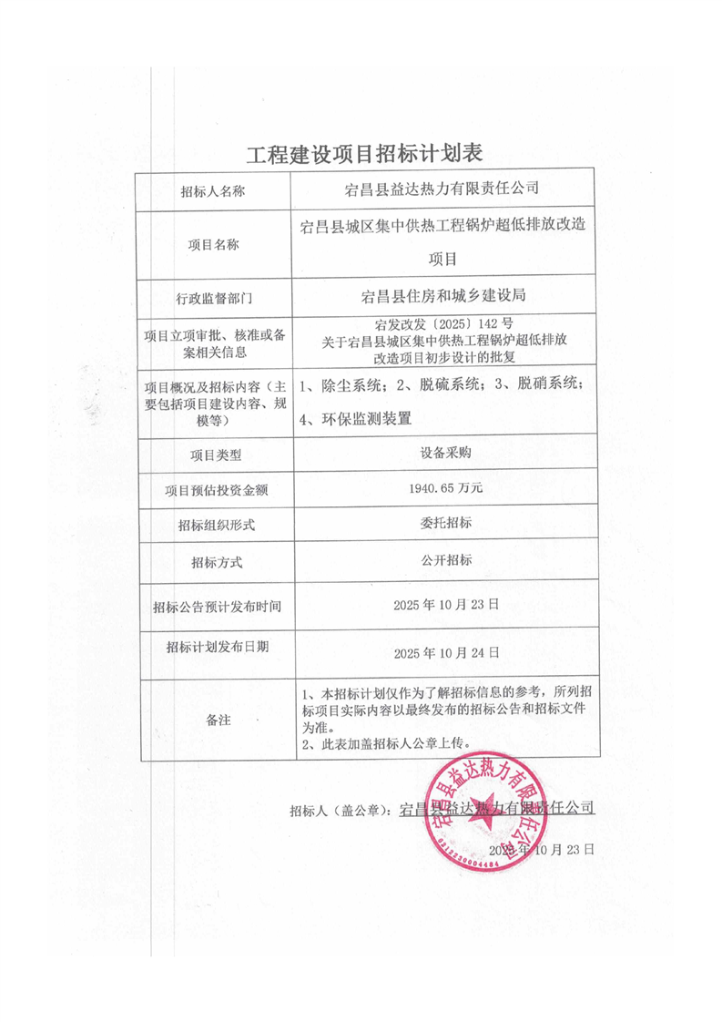 宕昌縣城區(qū)集中供熱工程鍋爐超低排放改造項目