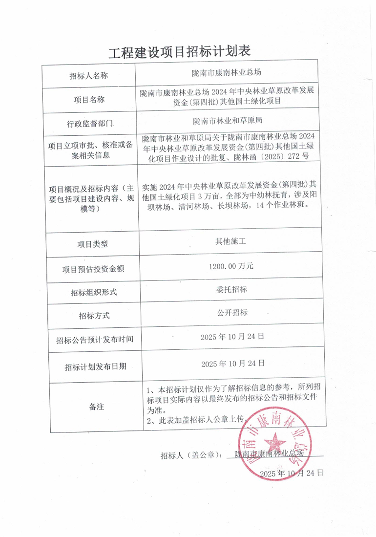 隴南市康南林業(yè)總場2024年中央林業(yè)草原改革發(fā)展資金(第四批)其他國土綠化項目
