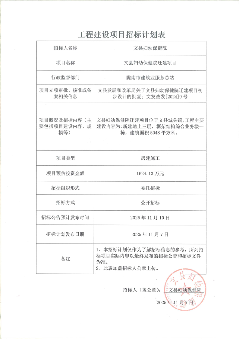 附件:招標(biāo)計(jì)劃表—文縣婦幼保健院遷建項(xiàng)目.pdf