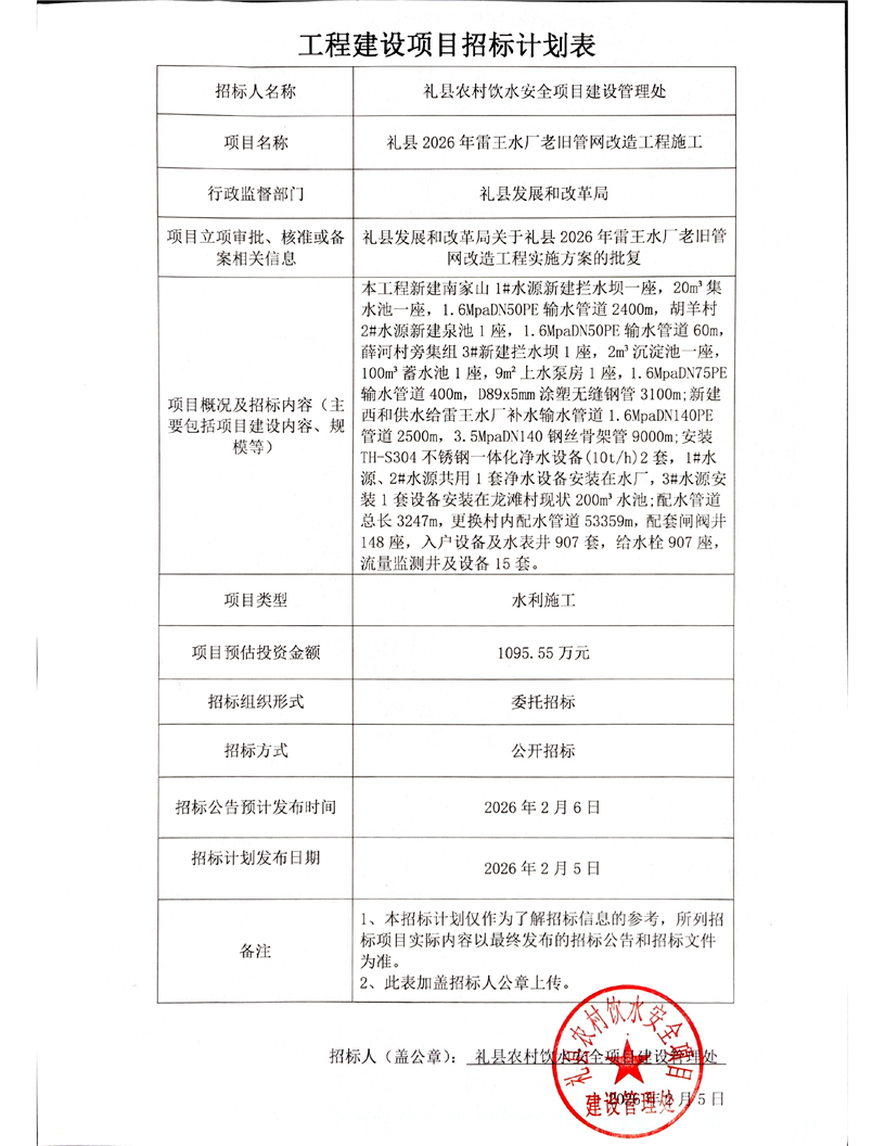 禮縣2026年雷王水廠老舊管網改造工程施工.pdf