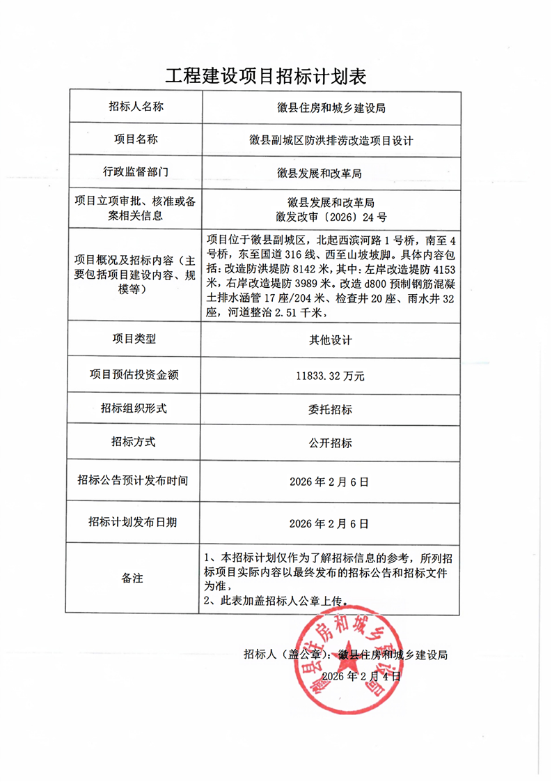 首頁 > 交易信息 > 工程建設(shè) > 項目招標(biāo)計劃