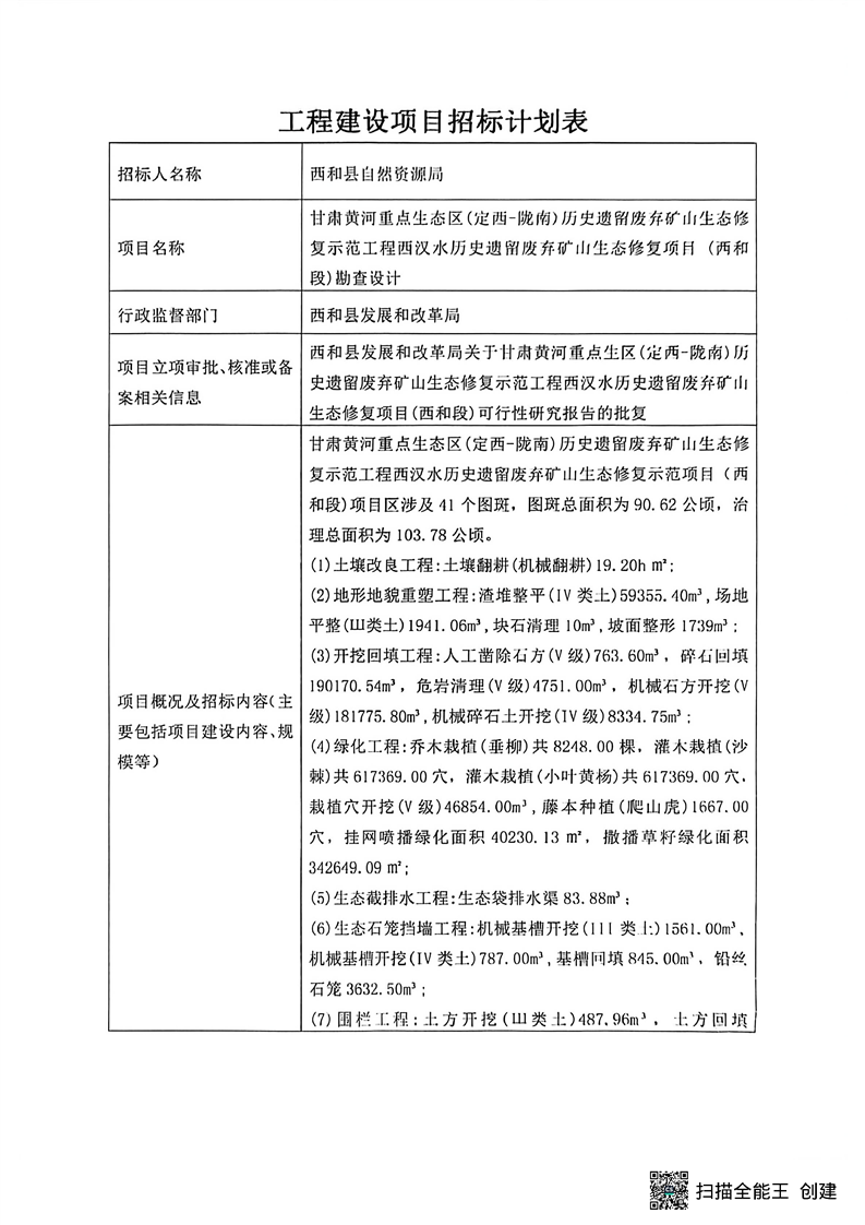 甘肅黃河重點生態(tài)區(qū)(定西-隴南)歷史遺留廢棄礦山生態(tài)修復(fù)示范工程西漢水歷史遺留廢棄礦山生態(tài)修復(fù)項目 (西和段)勘查設(shè)計