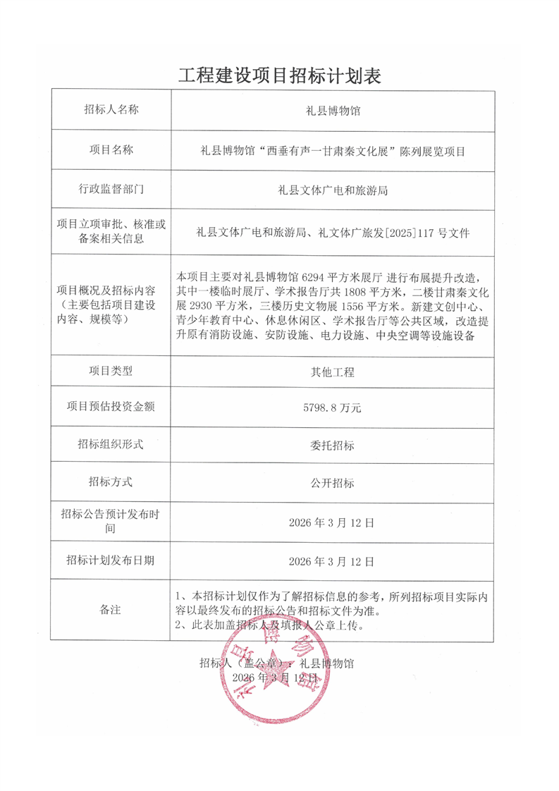 禮縣博物館“西垂有聲一甘肅秦文化展”陳列展覽項目